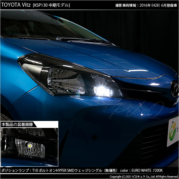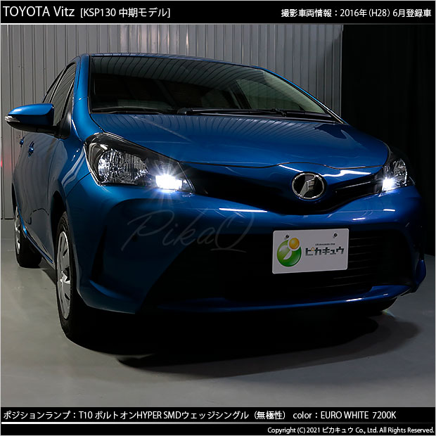 LED,ピカキュウ,LEDバルブ専門店,SMD,T10ウェッジ,ボルトオンHYPER SMDウェッジシングル球,7200ケルビン,ユーロホワイト,ポジションランプ,車幅灯,トヨタ,ヴィッツ,ビッツ,TOYOTA Vitz,KSP130系,NCP130系,SCP130系,3代目ヴィッツ,中期,