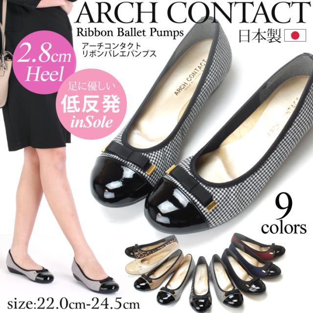 アーチコンタクト パンプス 痛くない 歩きやすい 疲れない ローヒール バレエシューズ ラウンドトゥ リボン 日本製 靴