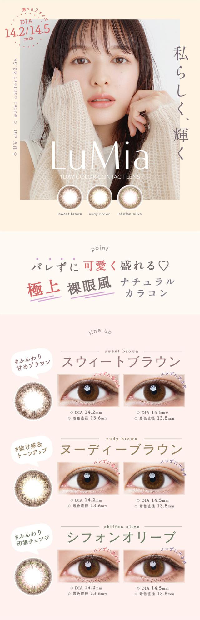 【メール便送料無料】LuMia ルミア 【1箱10枚入】14.2 14.5 森絵梨佳 度なし ブラウン ナチュラル 1day カラコン 度あり ワンデー カラコン ワンデー 度なし 1day カラーコンタクトレンズ カラーコンタクト 1day カラコン 度なし
