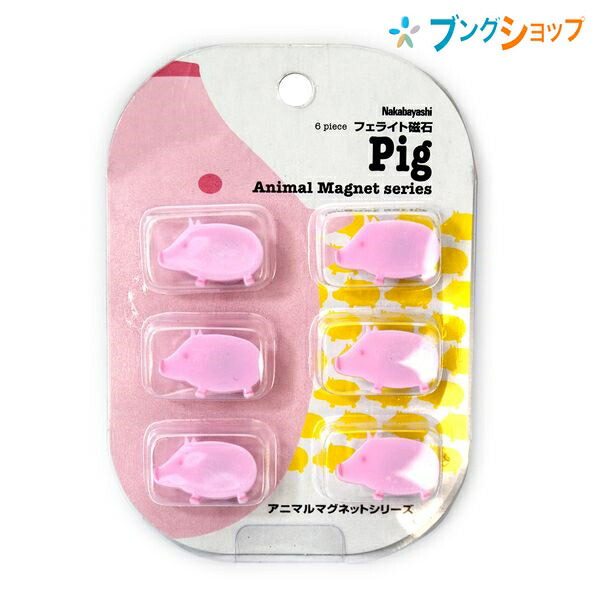 ナカバヤシ マグネット かわい〜い アニマルマグネット ブタ 6個入り AMGF01PI 可愛い 動物柄デザイン A4用紙約4枚保持 ご家庭 オフィス フェライト磁石 A4用紙 事務小物