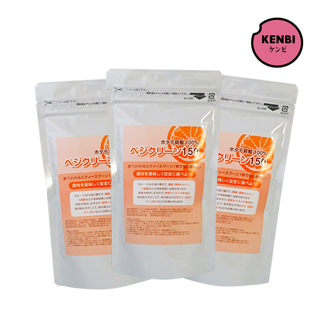 【メール便送料無料】ベジクリーン150(野菜洗浄用粉末)野菜洗い 天然素材(国産ホタテ貝殻)100% 野菜洗浄剤 150g×3袋セット