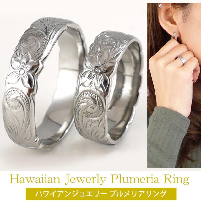 大切な人への贈り物として代々受け継がれているハワイの伝統的なジュエリー、ハワイアンジュエリー。ハワイを代表する愛らしい花、プルメリアモチーフのリングです。ハワイではプルメリアは「愛」を意味し、神の宿る神聖な花とも言われています。全周にモチーフが入っており、プルメリアと波をモチーフにした、ハワイアンジュエリーの定番ともいえるデザインです。リングの素材には金属アレルギーの方にも安心なサージカルステンレスを使用。シルバーやホワイトゴールド、プラチナで金属アレルギーが出てしまう方にもオススメできます。また硬い素材で、キズがつきにくいため、普段使いにも便利です。