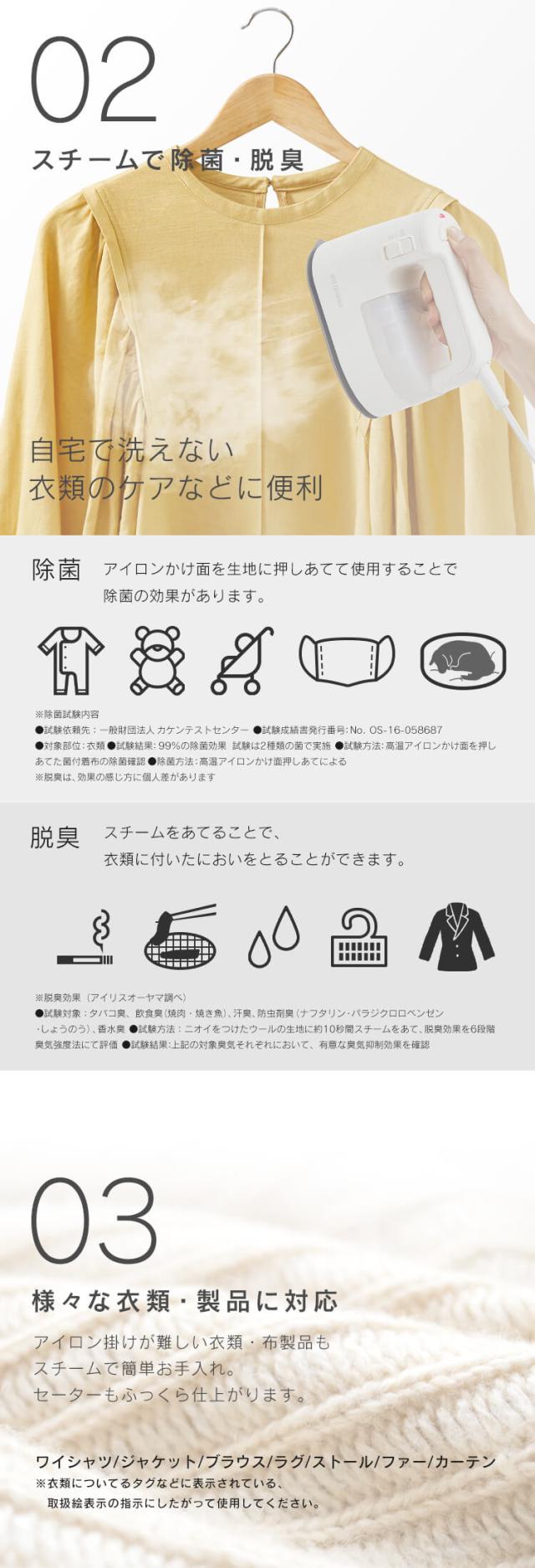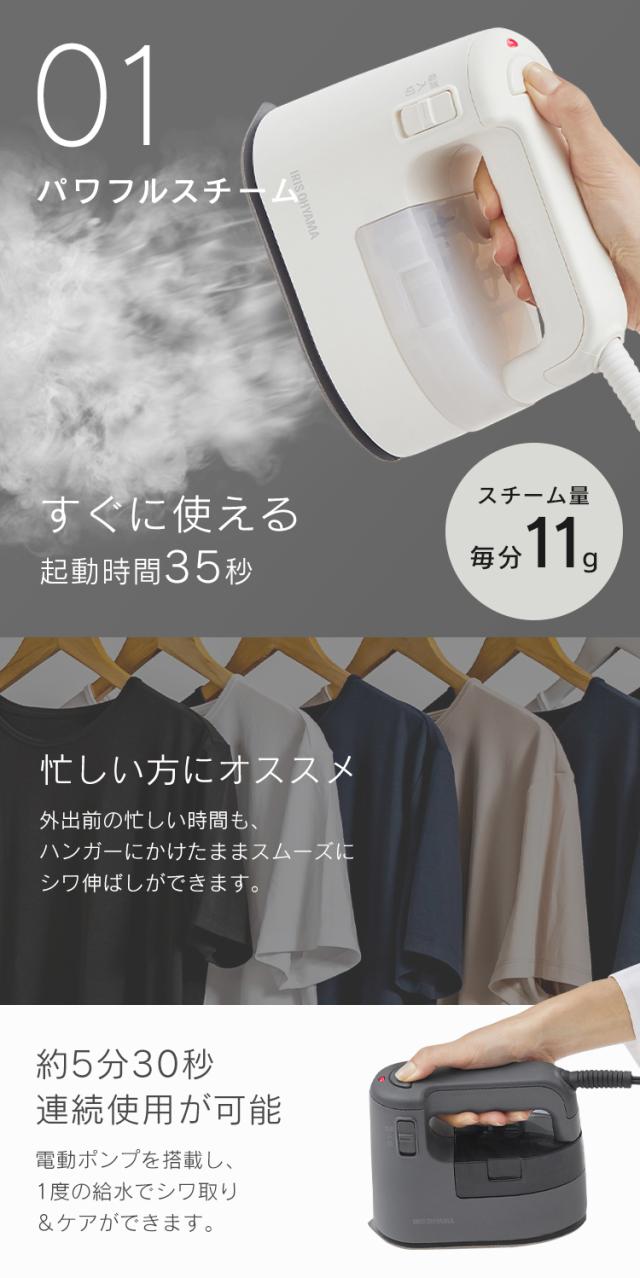 アイロン ハンディ コード付き スチーム 衣類スチーマー ハンディスチーマー スチームアイロン ハンガースチーマー アイリスオーヤマ 小型 コンパクト 除菌 脱臭 ハンガー ホワイト グレー アッシュ 白 IRS-02 安心延長保証対象