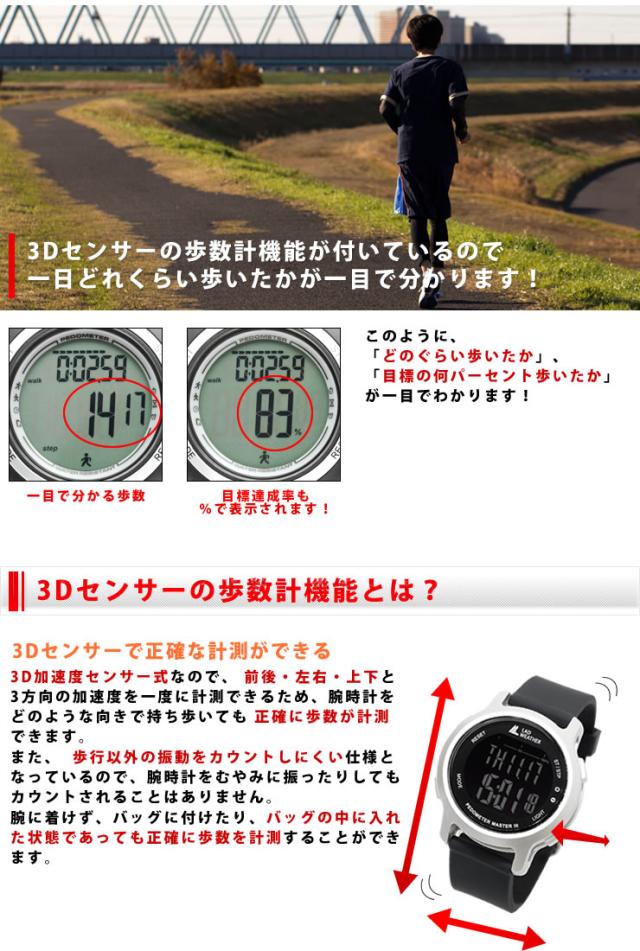 3Dセンサー搭載の歩数計付き腕時計 メンズ レディース デジタルウォッチ ランニング スポーツ ウォーキング ラドウェザー