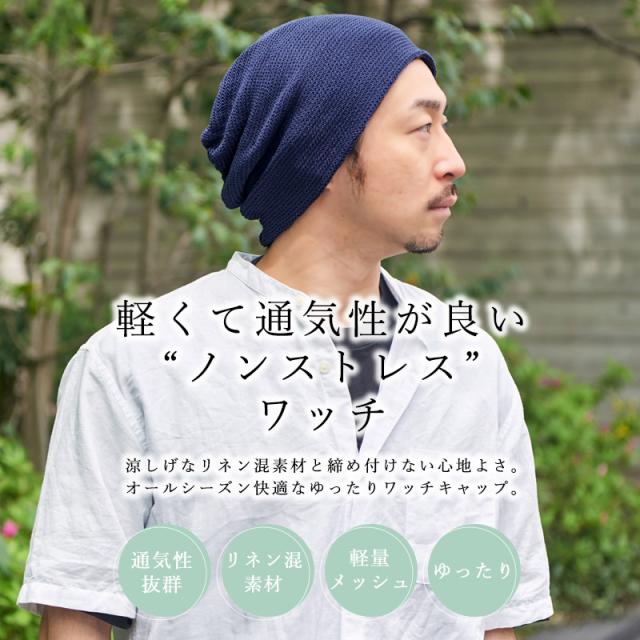 メンズ レディース オールシーズン 春 夏 春夏 春用 夏用 リネン 麻 帽子 ニット帽 ニット帽子 ニットキャップ ワッチキャップ ビーニー おしゃれ 大きいサイズ サマーニット帽 サマーニットキャップ 涼しい | CHARM YAI メッシュ ビック ワッチ bw-yai