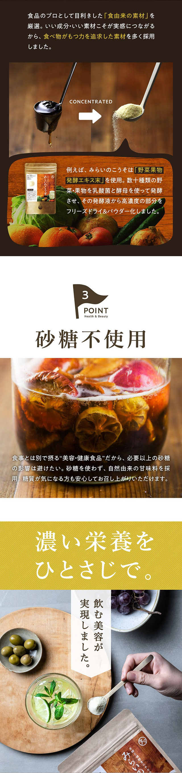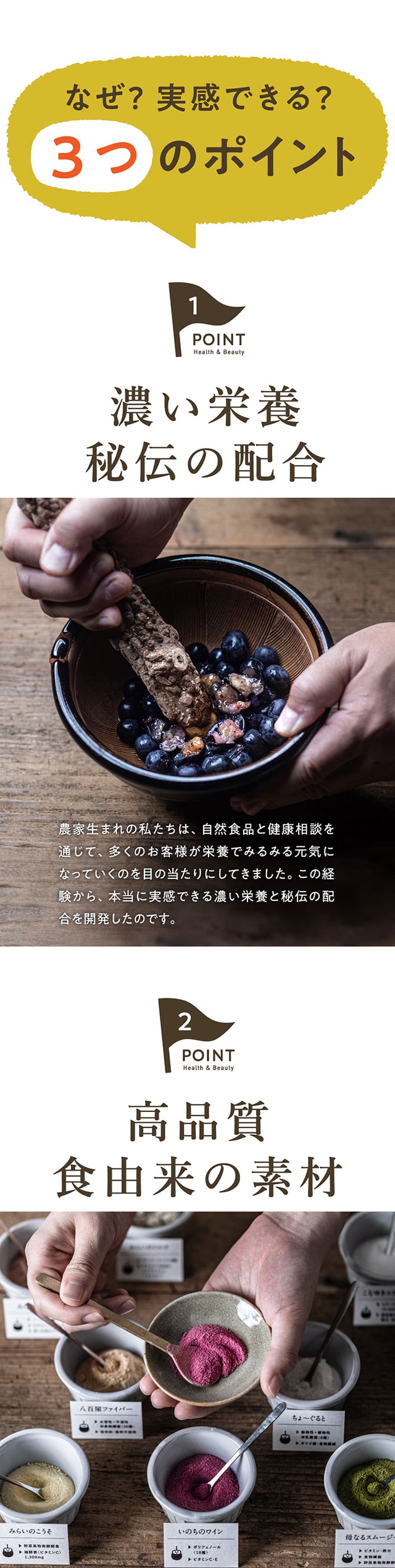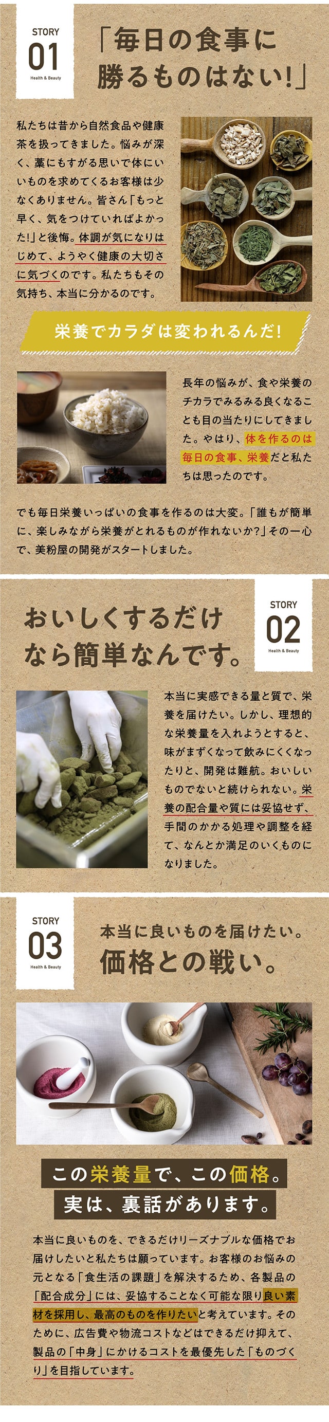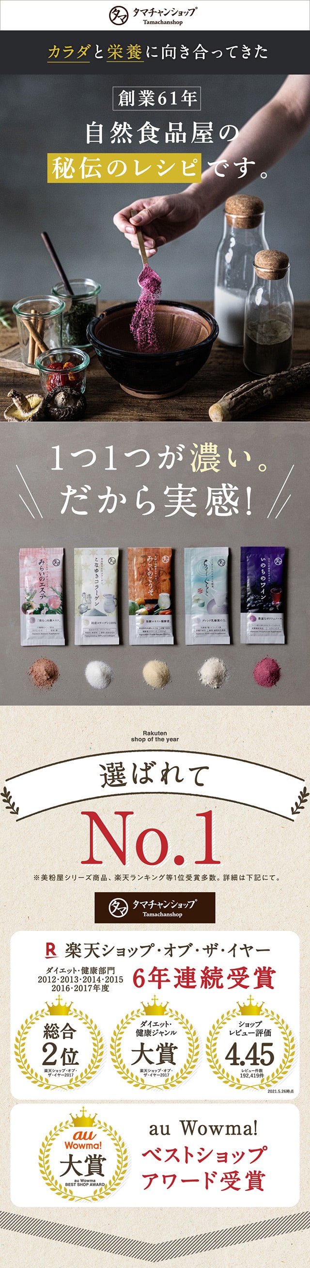 1日1さじの食べる美容、美粉屋分包5種類がセットに! 酵素+補酵素のチカラが詰まった「みらいのこうそ」、国産豚皮を使用した高品質・低分子コラーゲン「こなゆきコラーゲン」、動物性+植物性のW乳酸菌配合の「ちょーぐると」、ポリフェノールたっぷりの「いのちのワイン」、11種類のハーブが入ったクレンズドリンク 「みらいのエステ」、この5種類がお試いただけます。
