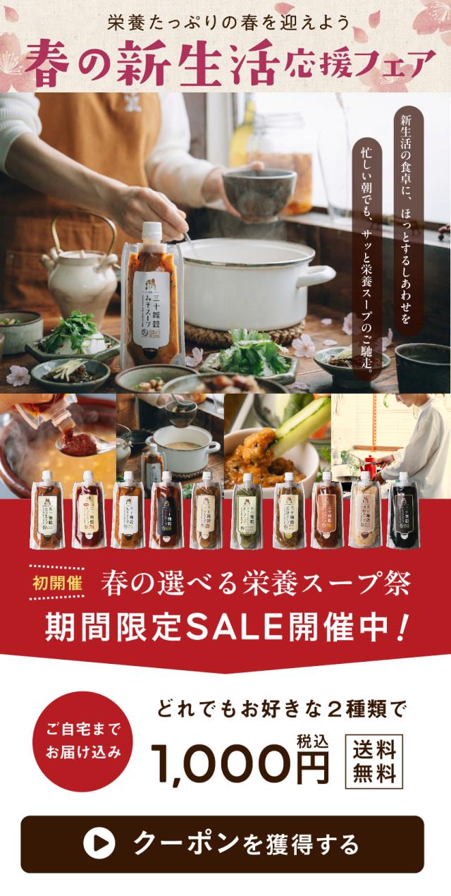 国産の雑穀30種類から生まれた「みそ」から作られました。ビタミン・ミネラルをはじめとする30種の栄養を、まるで緑黄色野菜を食べるように摂取することができます。さらに、体の巡りをサポートしてくれる「黄金生姜」入り。スープのほかに、お料理にもお使い頂けます。