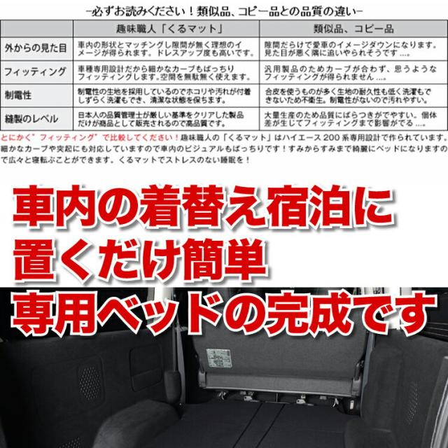 高品質!ハイエース200ワイドS-GL用 1型~8型の車中泊ベッド "くるマット"誕生!人気の車中泊 グッズ 車中泊マット ベッドキット Lot No.01