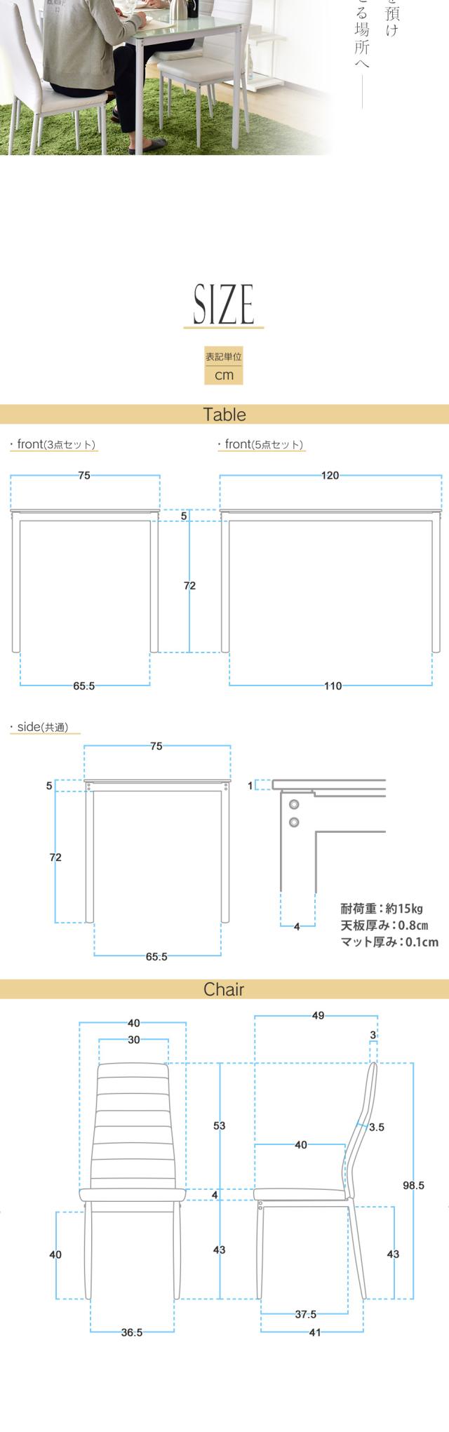 【5点set用テーブル】幅120×奥行75×高さ77cm