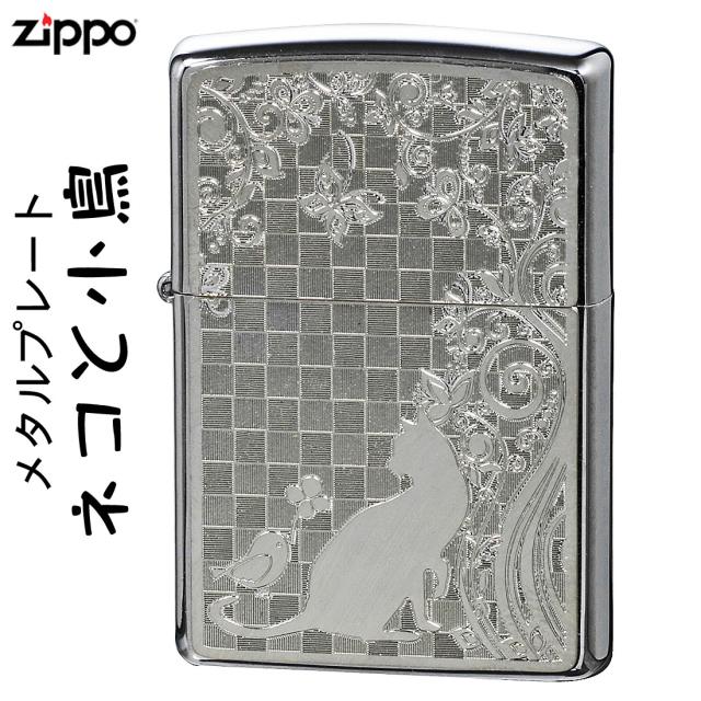 | ZIPPO/ネコと小鳥 ブラッシュクローム メタルプレート貼り | ||