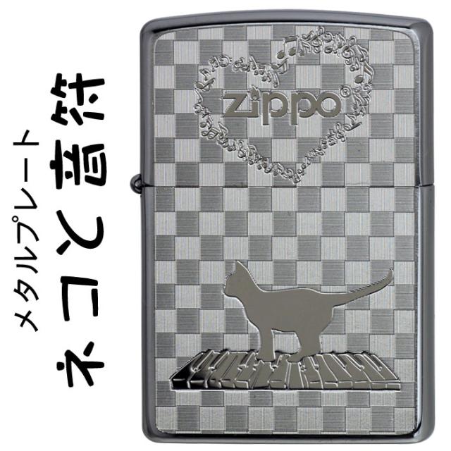 | ZIPPO/ネコと音符 ブラッシュクローム メタルプレート貼り | ||