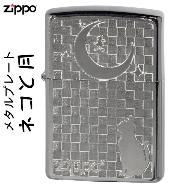 | ZIPPO/ネコと月 ブラッシュクローム メタルプレート貼り | ||