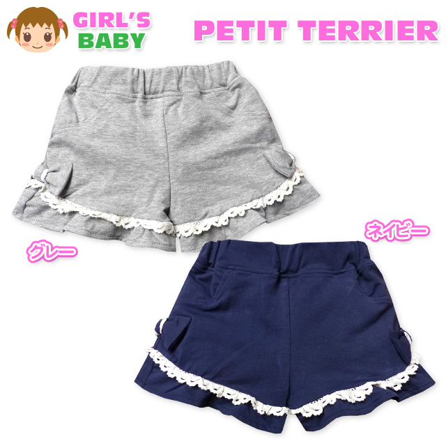 【送料無料】ベビー服 女の子 ショート パンツ ボトム ミニ裏毛 裾フリル レース リボン ウエストゴム 女児 ベビー【メール便対応】
