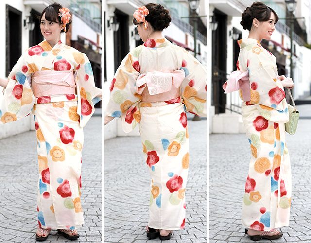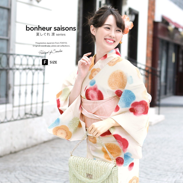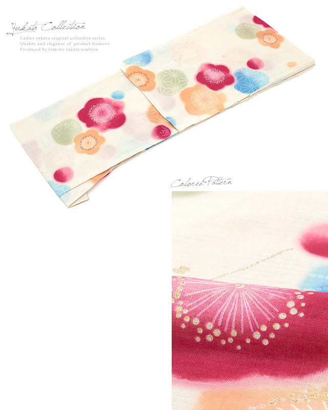 浴衣セット レディース レトロ 浴衣セット 大人 3点セット 白系 ホワイト クリーム カラフル ピンク 梅 花 麻の葉 ぼかし ラメ 綿 紅梅織 半幅帯 女性 ボヌールセゾン フリー