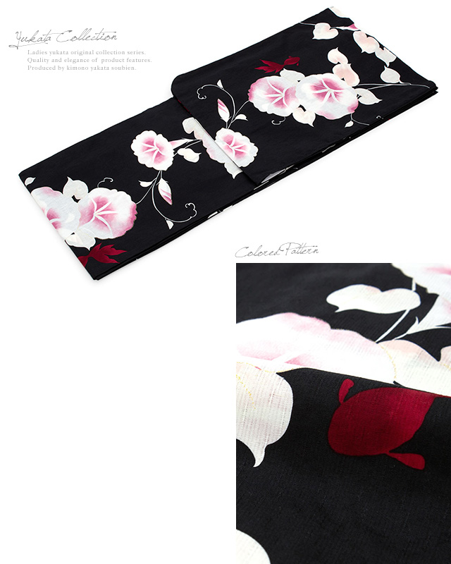 浴衣セット レディース レトロ 浴衣セット 大人 3点セット 黒 ブラック 黄色 朝顔 あさがお 花 金魚 ラメ 綿麻 半幅帯 女性 ボヌールセゾン フリー