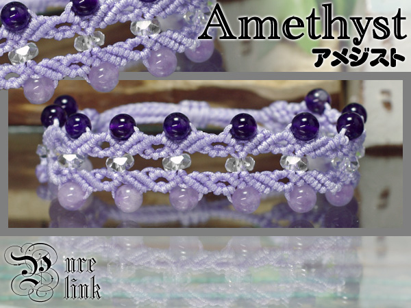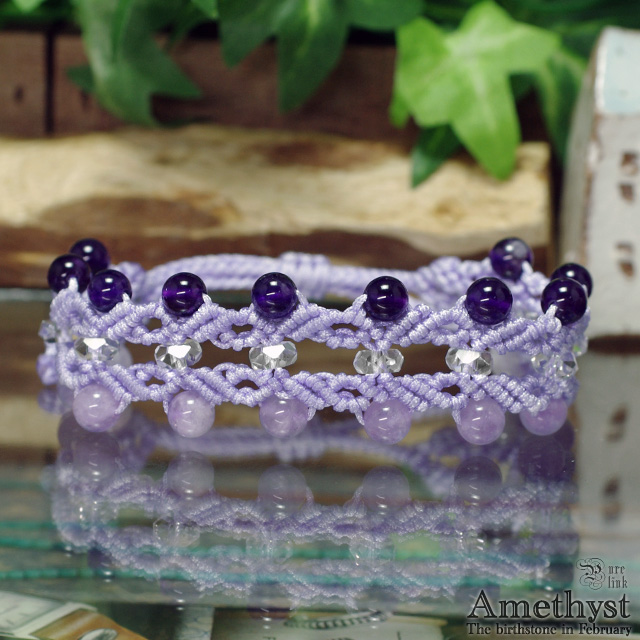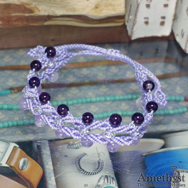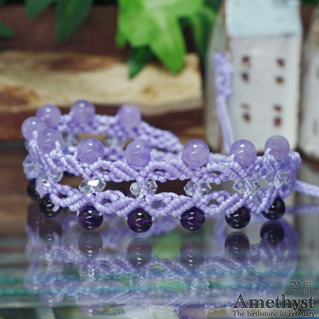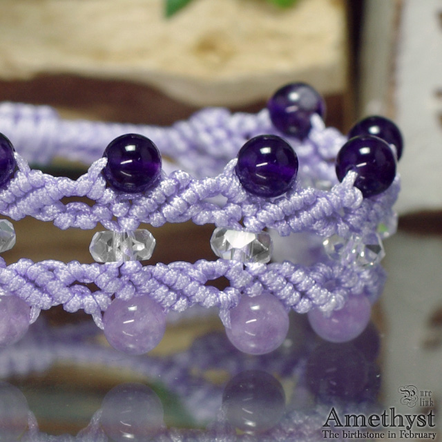 濃淡2つの聖紫石『アメジスト』マクラメハンドメイド編ブレス2 【ぴゅありんく】2月誕生石