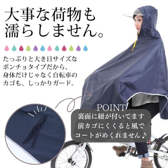レインコート レインポンチョ レディース メンズ カゴまですっぽり 自転車通勤・通学・お迎えに レインウェア カッパ 雨具 雨合羽