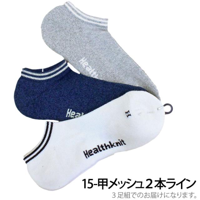 送料無料 Healthknit ヘルスニット 3足セット ボーダー スラブ メッシュ アメリカン ショートソックス スニーカーソックス アンクルソックス メンズ靴下 ゆうパケ