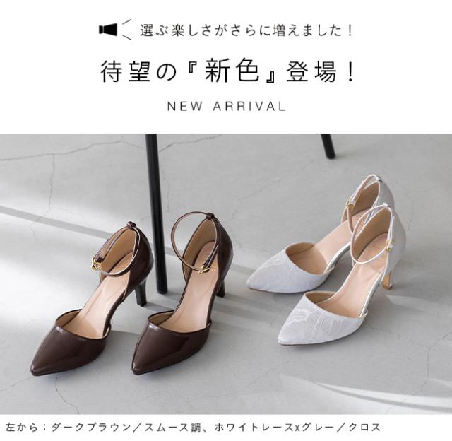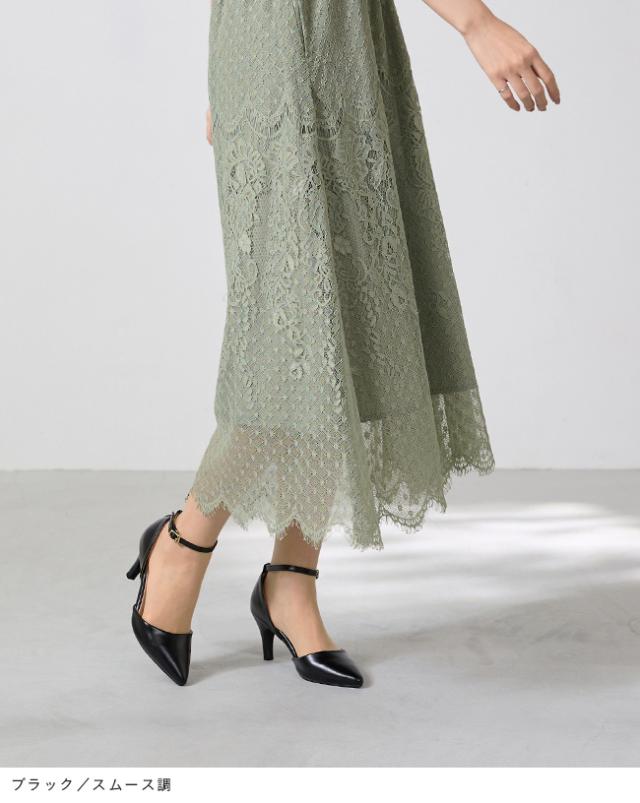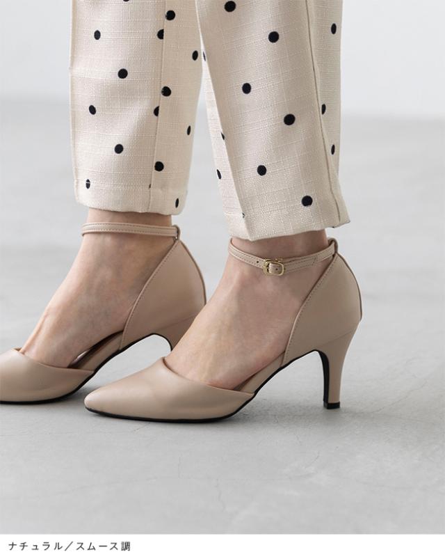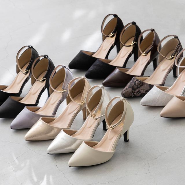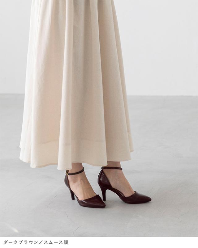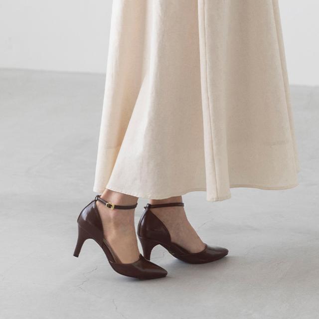 細めのヒールがエレガントさを引き立て、脚をすらりと長く美しく魅せてくれます。