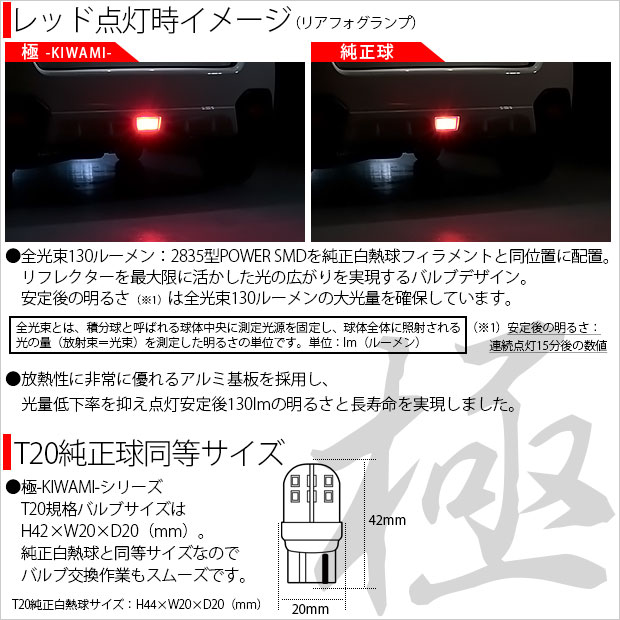 スバル XV (GP系 前期) 対応 LED バルブ リアフォグランプ T20S 極-KIWAMI- 130lm レッド 1000K 1個 6-A-5
