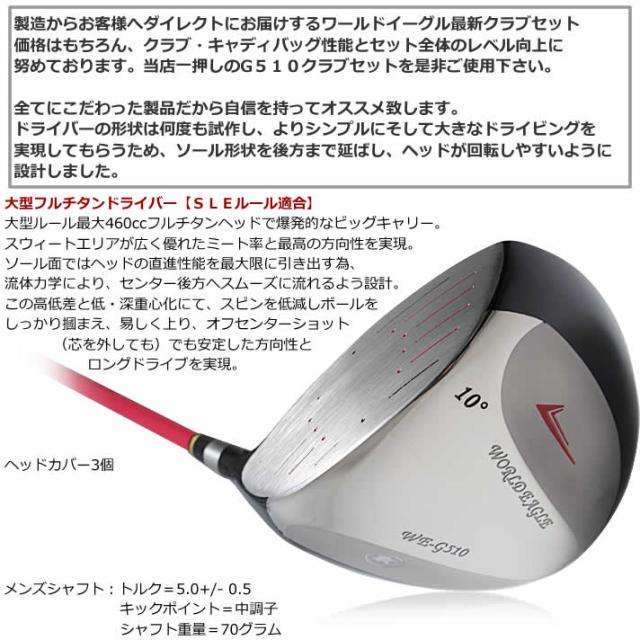 製造からお客様へダイレクトにお届けするワールドイーグル最新クラブセット。価格はもちろん、クラブ・キャディバッグ性能とセット全体のレベル向上に努めております1押しのクラブセットG510を是非ご使用下さい。全てにこだわった製品だから自身を持ってオススメ致します。