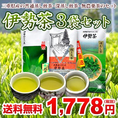 伊勢茶 セット (100g×3袋セット) メール便 送料無料 ( 送料無 送料込 お茶 茶葉 日本茶 深蒸し茶 煎茶 緑茶 おすすめ 国産 三重県産 伊勢 丸中製茶 )