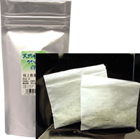 1番茶の粉のみ使用し、不織布のティーパックで包んだお茶。