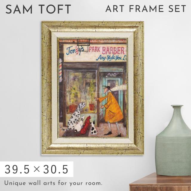 サムトフト 絵画 絵 39.5×30.5cm 【バーバーショップ カルテット】 アートパネル アートフレーム 壁掛け おしゃれ 犬 アートボード インテリア ポスター インテリア 絵 モダン アンティーク 玄関 飾る イギリス作家 ST-05825 ギフト プレゼント 新築祝