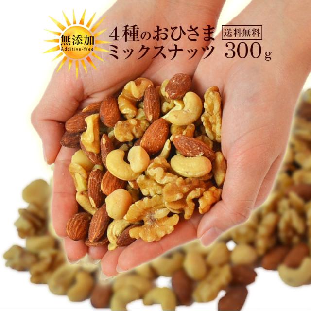 <4種のおひさまミックスナッツ> 300g 無塩 無油 無添加 クルミ アーモンド カシューナッツ マカダミアナッツ ロカボ 送料無料 海と太陽 メール便 ポイント消化 クーポン消化 おやつ おつまみ バレンタイン