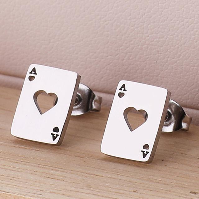 ハートのエース ステンレスピアス(1ペア) 両耳 ファッションピアス トランプ マジシャン カジノ 面白い カード 男 女 メンズ レディース 男性 女性 20G 20ゲージ 耳 軟骨 キャッチピアス スタッドピアス サージカルステンレス316L プレゼント