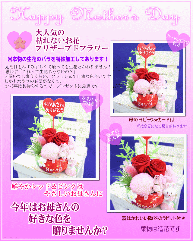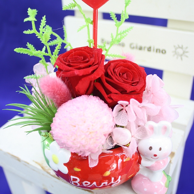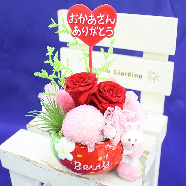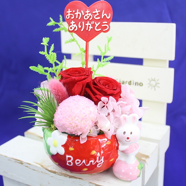 母の日 プリザ 大人気!2025母の日★ラビットプリザ【いちごレッド】3,520円【送料無料】ネット特価!母の日ギフト 早割 50代 60代 70代 80代