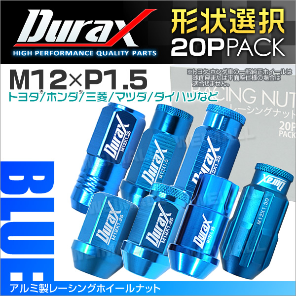 Durax 6種選択可能 アルミナット P1.5 青 ブルー アルミホイールナット ナット 軽量ホイールナットレーシングナット