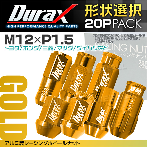 Durax ホイール ナット P1.5 ロックナット 専用ソケット付き 軽量 金 ゴールド レーシングナット ホイールナット トヨタ 三菱 ホンダ マツダ いすゞ ダイハツ 20個 ナット デュラックス 袋ナット カラー ナット ショート 盗難防止 送料無料