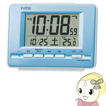 在庫あり 目覚まし時計 セイコークロック 電波 デジタル カレンダー・温度表示 PYXIS 薄青パール おしゃれ SEIKO