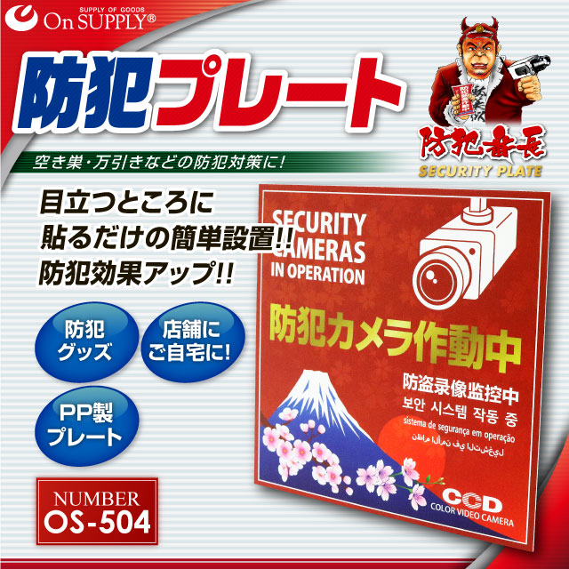 防犯プレート 防犯看板 「防犯カメラ作動中」 多言語対応 (OS-504) UVカット ダミーカメラの効果UPに防犯プレート