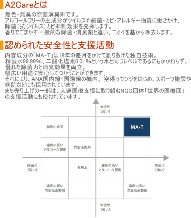 | 成分 | MA-T二酸化塩素水溶液(中性) (水:99.99%、二酸化塩素:0.01%) |