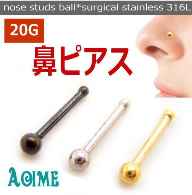 鼻ピアス 20G ボディピアス ノーズスタッド ボール ノーズピアス ノストリル 鼻ピ 金 銀 黒 bp723-