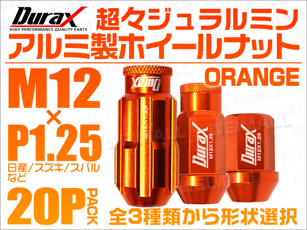 Durax ホイール ナット P1.25 20個 盗難防止 ロックナット 専用ソケット付き オレンジ レーシングナット ホイールナット 日産 スバル スズキ ホイールナット デュラックス 袋ナット カラー ナット ショート 軽量 送料無料