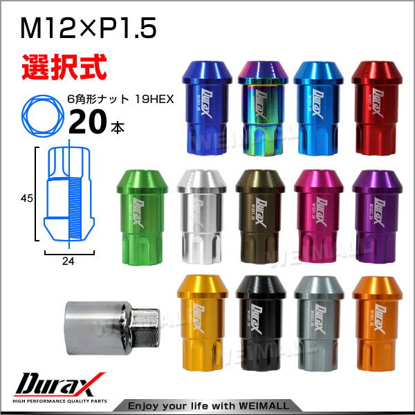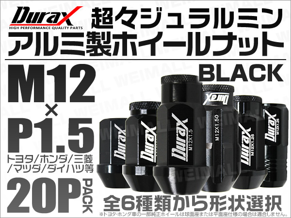 Durax アルミナット 黒 ブラック P1.5 ホイールナット ナット レーシングナット