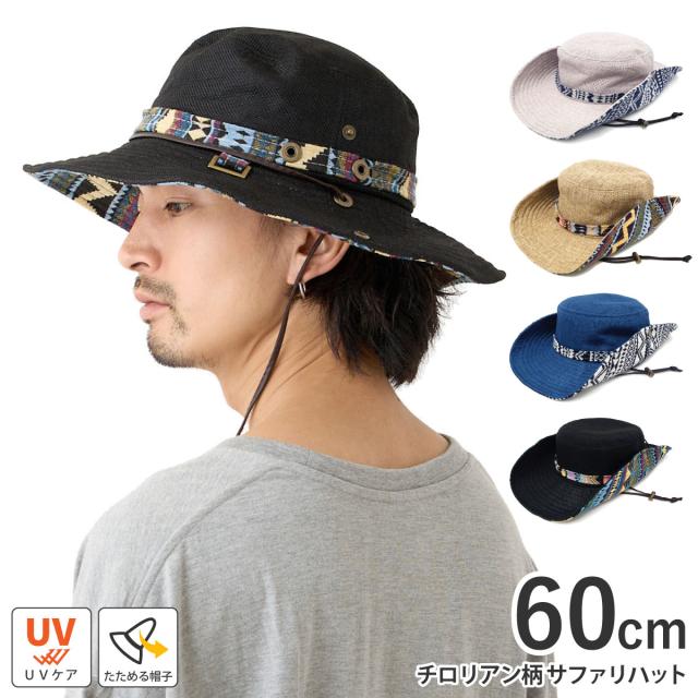 サファリハット 帽子 大きいサイズ 60cm チロリアン柄 再入荷でサイズ変更 2WAY ハット hat-1263 メール便は送料無料 旅行 アウトドア 帽子 メンズ レディース 春夏 ゆったり BIG キャンプ UV 日よけ 男女兼用 おしゃれ