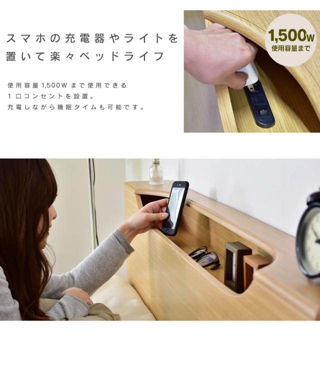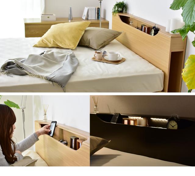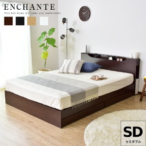 べッド 宮棚 LED 照明 ベッドフレーム 木製 セミダブル 組み立て式 棚 収納 引き出し コンセント穴 アンシャンテ SD インテリア家具 おすすめ おしゃれ 北欧 big_ki プレゼント tm