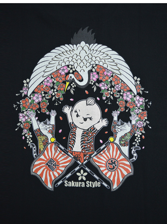 CHIGIRIさんから、サクラスタイル15周年企画別注半袖Tシャツ「万歳」のご紹介です。 サクラスタイル15周年を記念して製作して頂いた、当店限定のTシャツです! 背中には、ちぎりちゃんとそのお仲間の猫の彫ぶち達が万歳をする姿がプリントしてあります。 バックにしっかり柄を入れている分、フロントはシンプルに仕上げ、メリハリを付けました。 カラーは3色。 | ||||||||||