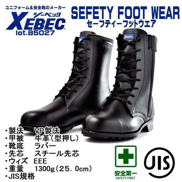 ジーベック 安全靴 85027 ワークブーツ スチール先 牛革 反射材 サイドファスナー XEBEC