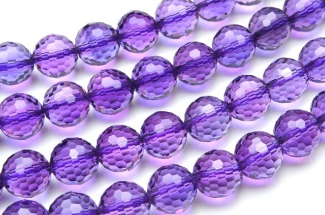 アメジスト 128面カット 合成水晶 8mm 1連(約38cm)_R5370-8