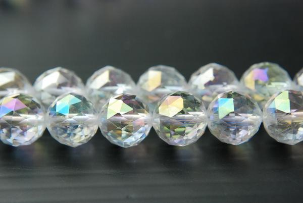 水晶96面トライアングルカットレインボーオーラ 6mm 1連(約38cm)_R782-6