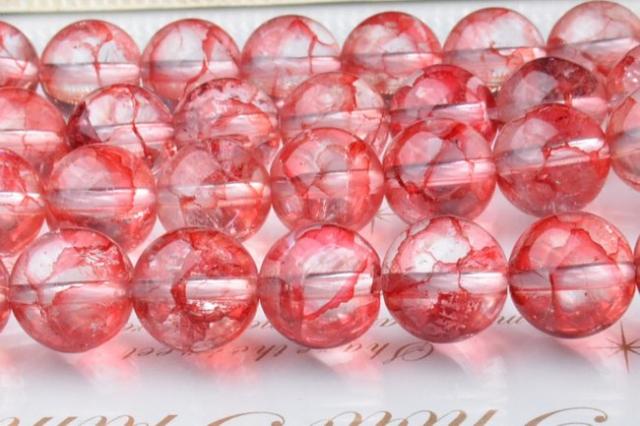 6mm クラック水晶(爆裂水晶) (レッド) 1連(約38cm)_R1583-6/A6-6