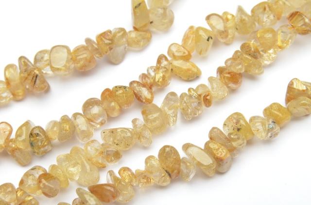 | 特徴・意味 | さざれタイプのビーズです。活用度の高いさざれビーズなので、この機会に是非。 ルチルクォーツはクォーツの一種ですが、ルチルがクォーツのパワーをいっそう高めるため、通常のクォーツよりも強力なエネルギーをもつといわれています。内部に『金色の線』が入っていることから『金銭』を呼び込むパワーストーンとされ、特に、黄金色に美しく輝くものは金運のお守りとして古くから珍重されてきました。 |