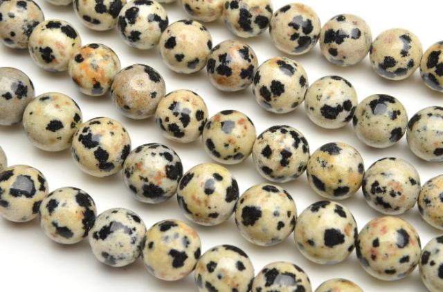 | 特徴・意味 | ダルメシアンジャスパーは、その名の通りダルメシアン犬のような模様を持つ石です。正式名はアプライトといい石英、長石、雲母の集合した半花崗岩といわれ、等粒状の完晶質の火成岩です。黒い斑点がとても個性的で、他の石にはない魅力を持っています。「戒めの石」といわれ、自分自身を見つめ直して、ネガティブな思考からの脱却を助け、精神を鍛えて目標の達成に力を貸してくれるといわれます。 |