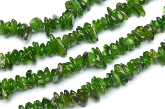 | 特徴・意味 | さざれタイプのビーズです。活用度の高いさざれビーズなので、この機会に是非。 ダイオプサイドは、白色や濃い緑色など、さまざまな種類があるパワーストーンです。中でも人気が高いのが、エメラルドに似た明るいグリーンカラーのクロムダイオプサイド。金属のクロムを含むことで、鮮やかな緑色が発色されます。高品質なものになると透明感があり、知る人ぞ知る宝石の一つとして人気を集めています。 創造性や探求意識を高めることで、自己成長を促してくれる「ダイオプサイド」。名前の由来は、ギリシャ語で透明を意味する「diopsis」との説や、ダブルを意味する「di」と外観を意味する「optis」が組み合わさったなど、諸説あります。エメラルドに似た美しい緑色は、クロムによるもの。最大で2%のクロムが含まれると、鮮やかなグリーンが発色するといわれています。 ダイオプサイドは、主に心に作用し、精神的な不安や心配事を緩和することでストレスを軽減、感情を安定させてくれる力があるとされています。心のバランスが保たれるようになることで、創造性、直感力を高めるとともに知性を輝かせることが期待されています。その他にも、自分に自信をもたらすことで、精神的な成長を促がしてくれます。恋と仕事の両立、より魅力的な大人の女性へのステップアップを目指す方を応援します。 |