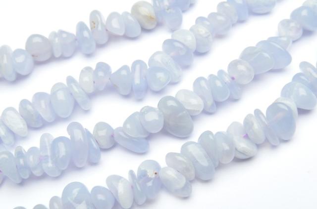 | 特徴・意味 | さざれタイプのビーズです。活用度の高いさざれビーズなので、この機会に是非。 ブルーレースアゲートはブルーカルセドニーと基本的に非常に近い鉱物でありながら、エネルギーの特性としては多少違う傾向が見られます。 その特徴の違いを分けるのはレースのように見える模様です。これは他にも同じ傾向の石が存在します。天眼石やマラカイトなど魔よけの力も、眼のように見える模様によるところが大きいようです。 シチリア島にあるアカーテ(acate)という川のほとりで発見されたことから、アゲートと呼ばれるようになりました。 近年質の良いブルーレースアゲートの鉱石が減少しており、美しいレースがはっきりと見られる、ブルーレースアゲートの入手が難しくなり始めました。 |